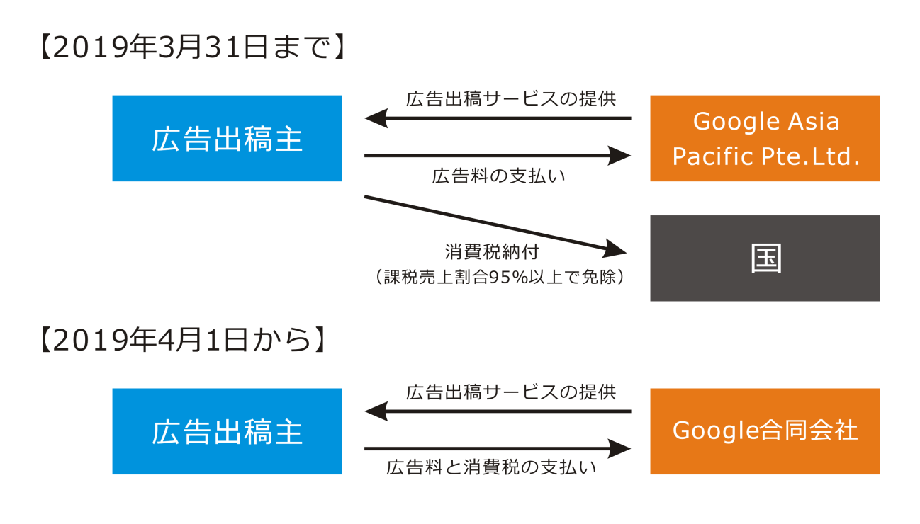 一方、2019年4月1日より広告料の支払い先が、海外の「Google Asia Pacific Pte.Ltd.」から日本国内の「Google合同会社」に変更されるに伴い、課税売上割合にかかわらず消費税を支払う義務が生じました