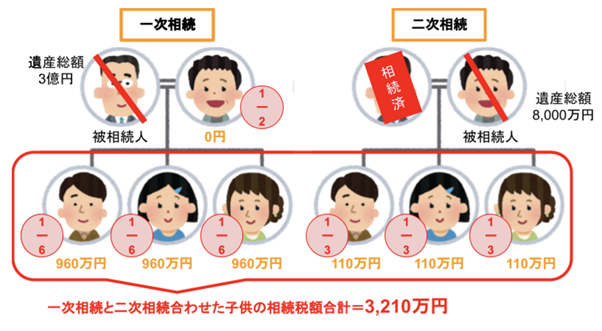 また、一次相続と二次相続では子供の相続税額に違いがあります。