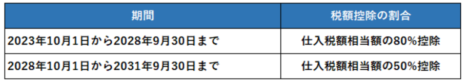 仕入に免税事業者を利用すると仕入税額控除が適用できないため、課税事業者との取引に切り替える企業が増えるかもしれないからです。もしくは、取引先から課税事業者になるよう要請される可能性も考えられるでしょう。そのため、以下のような経過措置が設けられています。