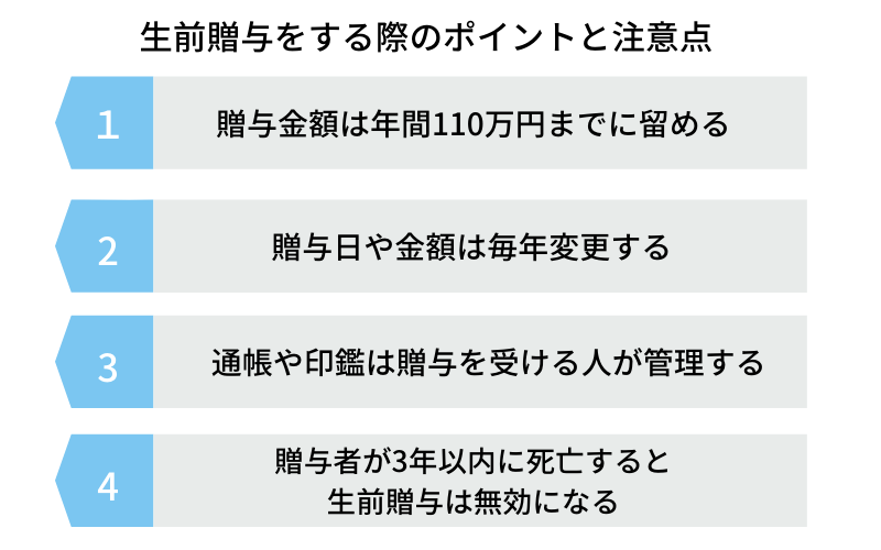 では生前贈与により相続財産を減らすためには、どのような点に気をつければよいのでしょうか。
