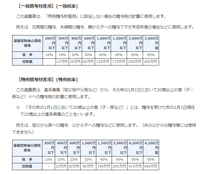 出典:国税庁 贈与税の計算と税率(暦年課税)